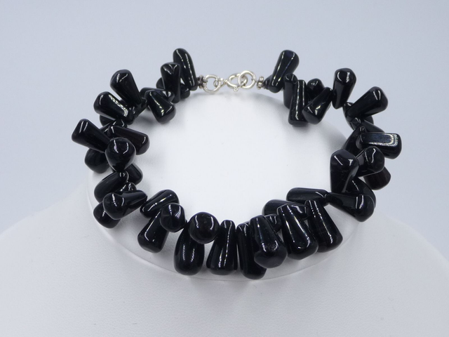 Chaque pierre est taillée en forme de. Elles sont noires brillantes.